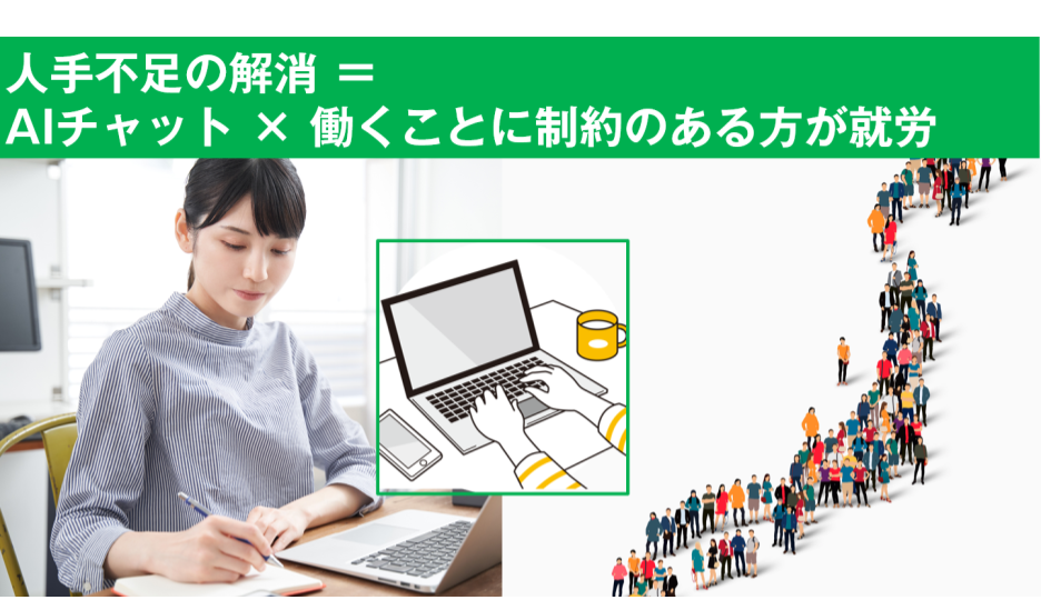 本プロジェクトでは、労働人口が減少する日本だからこそ、より多くの方がお仕事を通じて社会参画できる機会をつくります。働く方へは、安心して参画できる機会づくりへ、企業へは顧客対応の標準化と対応体制というソリューションを提供します。