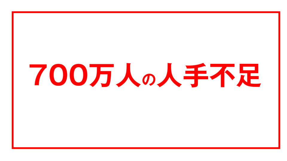 2030年時点の人手不足は「約700万人」とも試算されており(みずほリサーチ&テクノロジーズ:https://www.mizuho-rt.co.jp/publication/report/research/rpt/2023/report230428.html)、業種別でみると「特にサービス業においては、2030年には約400万人の労働力が不足する」と推計されています(パーソル総合研究所:https://rc.persol-group.co.jp/thinktank/spe/roudou2030/)。