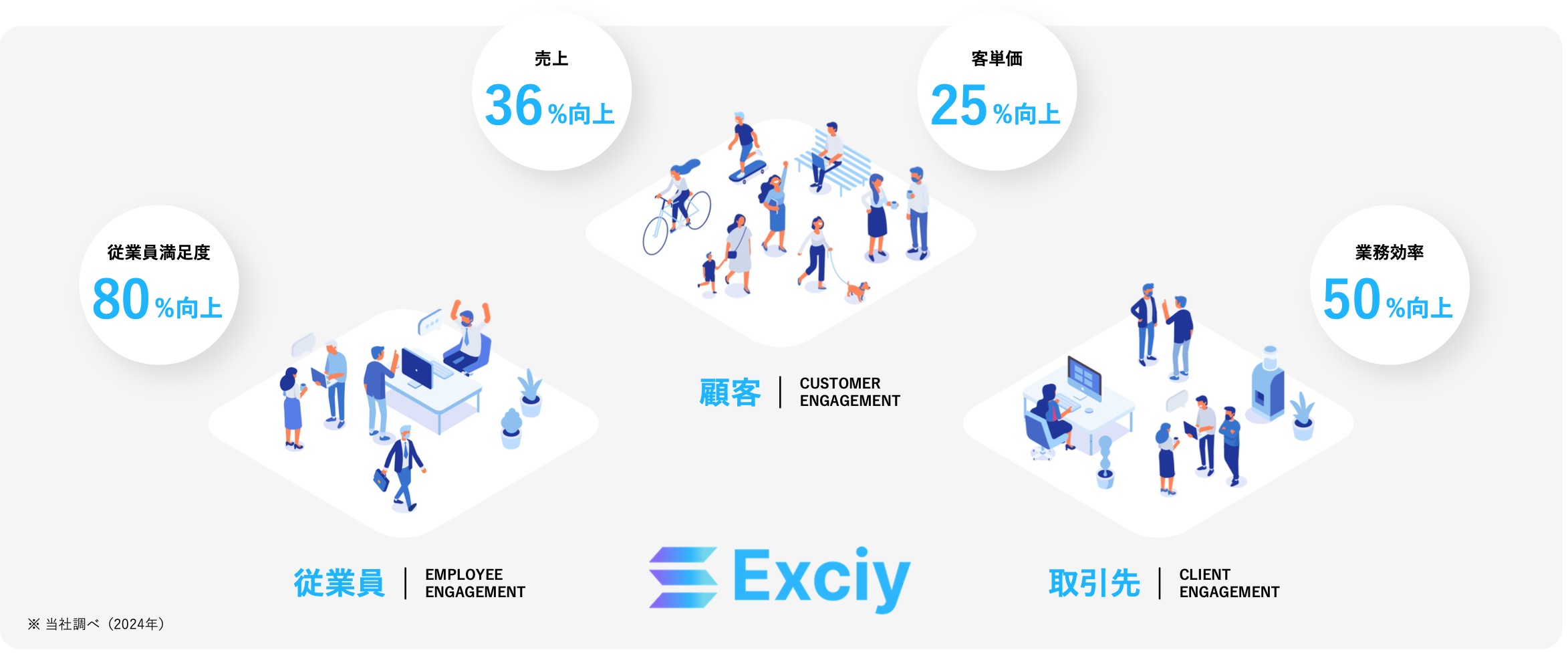 "LINEマーケティングをもっと簡単に、もっと効果的に"をコンセプトに、どんな企業でも業務効率・集客単価・客単価向上を低価格で実現したい思いから、Exciyが生まれました。