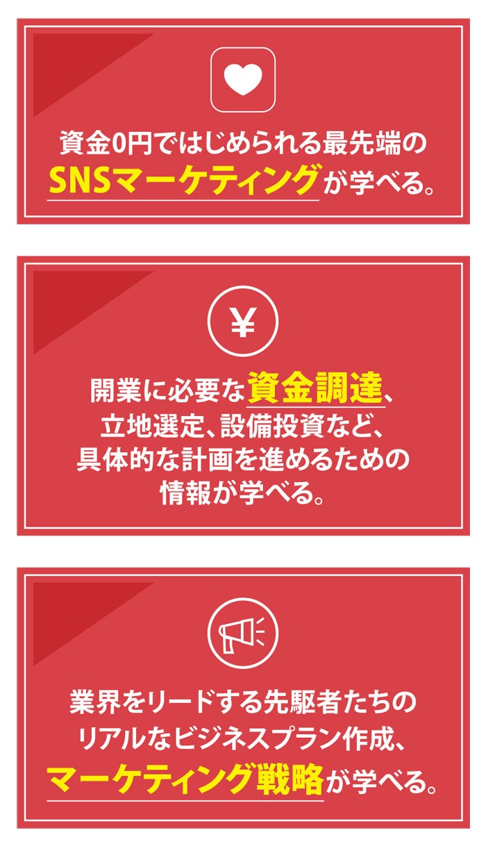 業界の最前線で活躍するプロフェッショナルたちが登壇し、開業の秘訣や経営のノウハウを伝授します。