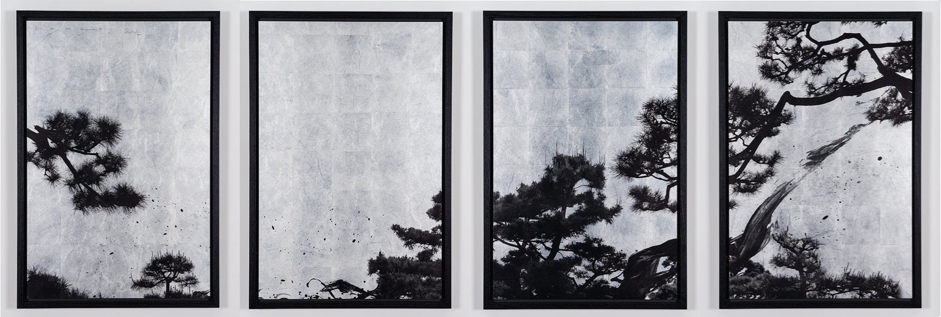 安土桃山時代に確立された美術表現と言われる、余白や見立てなどの目には見えない美意識や表現が、作品づくりの意識の根底に置かれ、そして、侘びと寂びのつつましく、質素なもの中にある趣。時間の経過によって表れる変化が織りなす多様な美しさ。この古典的美を、現代的視覚表現や印刷技術、そして、伝統工藝の技術、デジタルとクラフトの技術及び手法を結合させることで、独自の実像と虚像が共存する作品を生み出している。