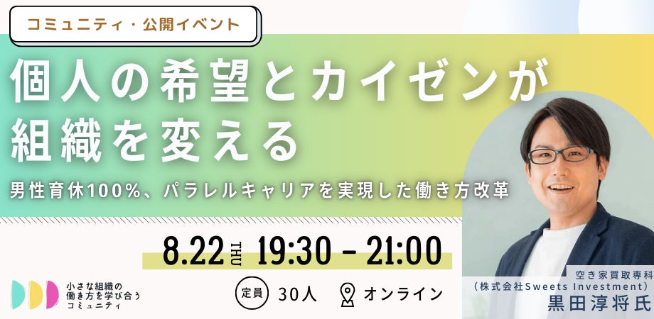 中小企業の多様な働き方・ダイバーシティ推進を拡げる”小さな組織の働き方を学び合うコミュニティ”の公開イベント開始。今回のテーマは中小企業で男性育休100%やパラレルキャリアを実現した働き方