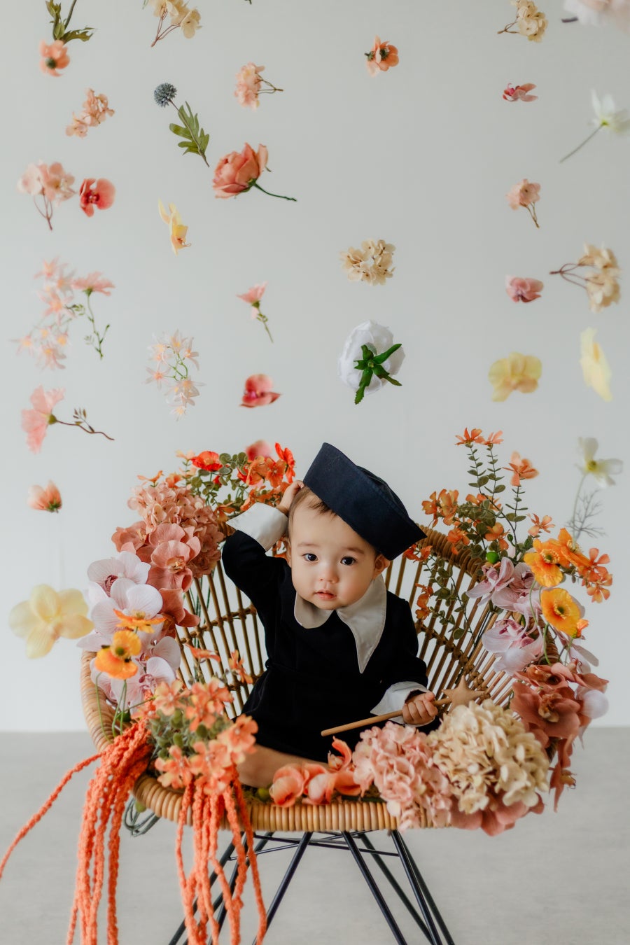 画像は背景のガーランドから椅子に取り付けられた花材までほとんどをkikiのものをご使用いただいております。色鮮やかな花材は写真にした際により鮮明に美しく残ってくれます。また、アーティフィシャルフラワーは半永久的に使用できるため繰り返し撮影に使えます。バラして他の撮影に繰り返し使用することもできます。フラワーフォトブースはアニバーサリー撮影で今や大人気なスタイリング。この撮影ができるなら、と、県外からわざわざ訪れる人が絶えないスタジオも多く、再現性の高いアーティフィシャルフラワーフォトブースはお客様の期待を裏切りません。常に高いクオリティで、ご要望にお応えすることができます。