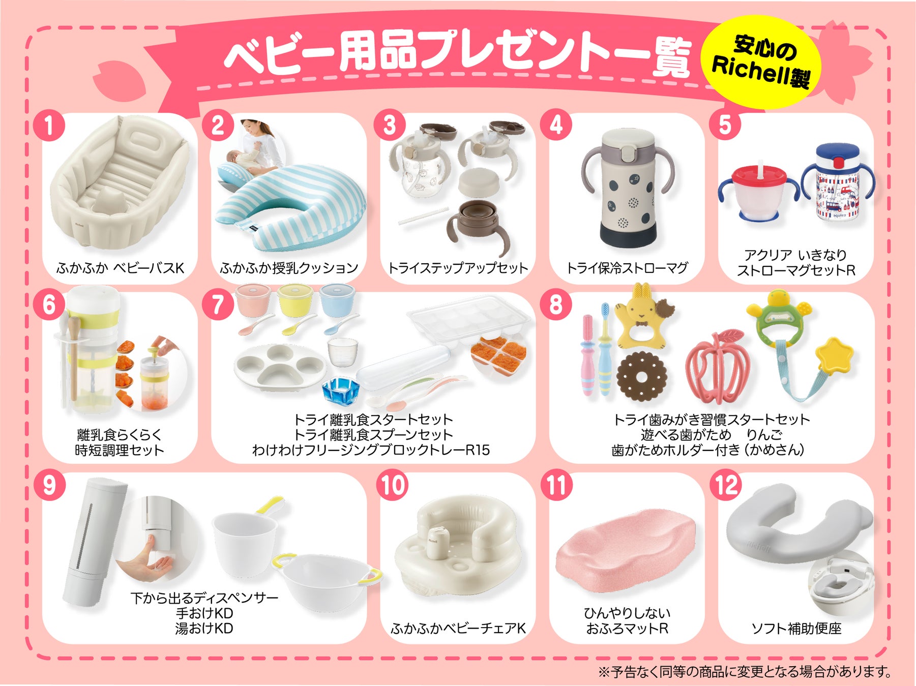 【ベビー用品】ベビー用品でおなじみのRichellから、必要なものを1点お選びいただけます。