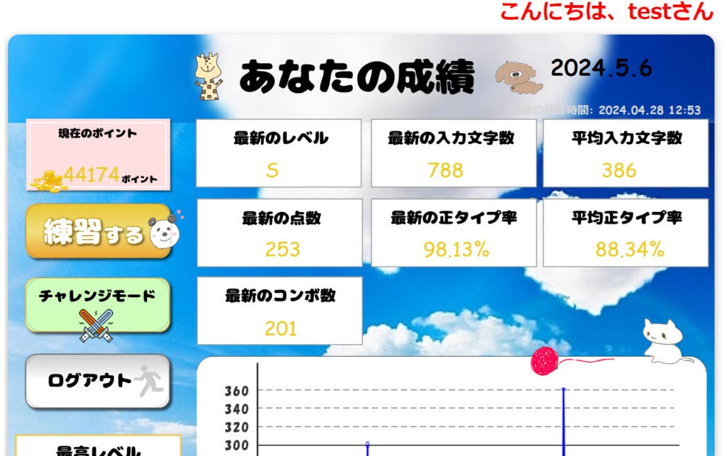 子どもたちの成長が記録でき、先生も確認が可能!お友達同士が競い合うことで、自然にタイピング力が向上します!