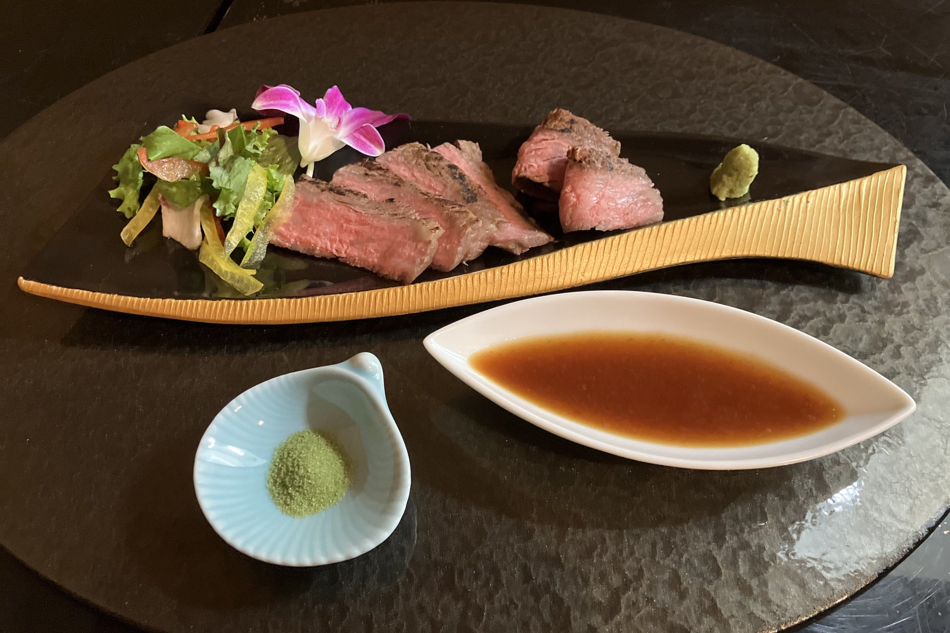 食のメイン料理は「知多牛ステーキ」「恋美豚の低温調理」から、朝食は「和食」「洋食」をお選びいただけます。アレルギー対応も致します(応相談)。