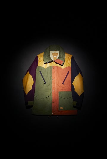 上記01.にも登場したRocky Mountain Featherbedの有名なMPジャケット。ハリー・スティーブンソン社のハイブリッドコットン生地を使用し、4色の美しいカラーをミックスしたマルチトーン・パネルのジャケット。生地の質感はややマットな仕上がりで、雨、雪、風を防ぐだけでなく、汗などの不快な湿気も逃す。
