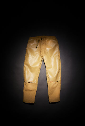 ヴィンテージのアーカイヴには存在しないが、馬に乗るために、また作業するために必要な要素をレザーで補強したイージーのパンツ。フロントのレザーパッチは、ワークウェアスタイルにもあるダメージが目立つ箇所を保護する意味のあるデザイン。