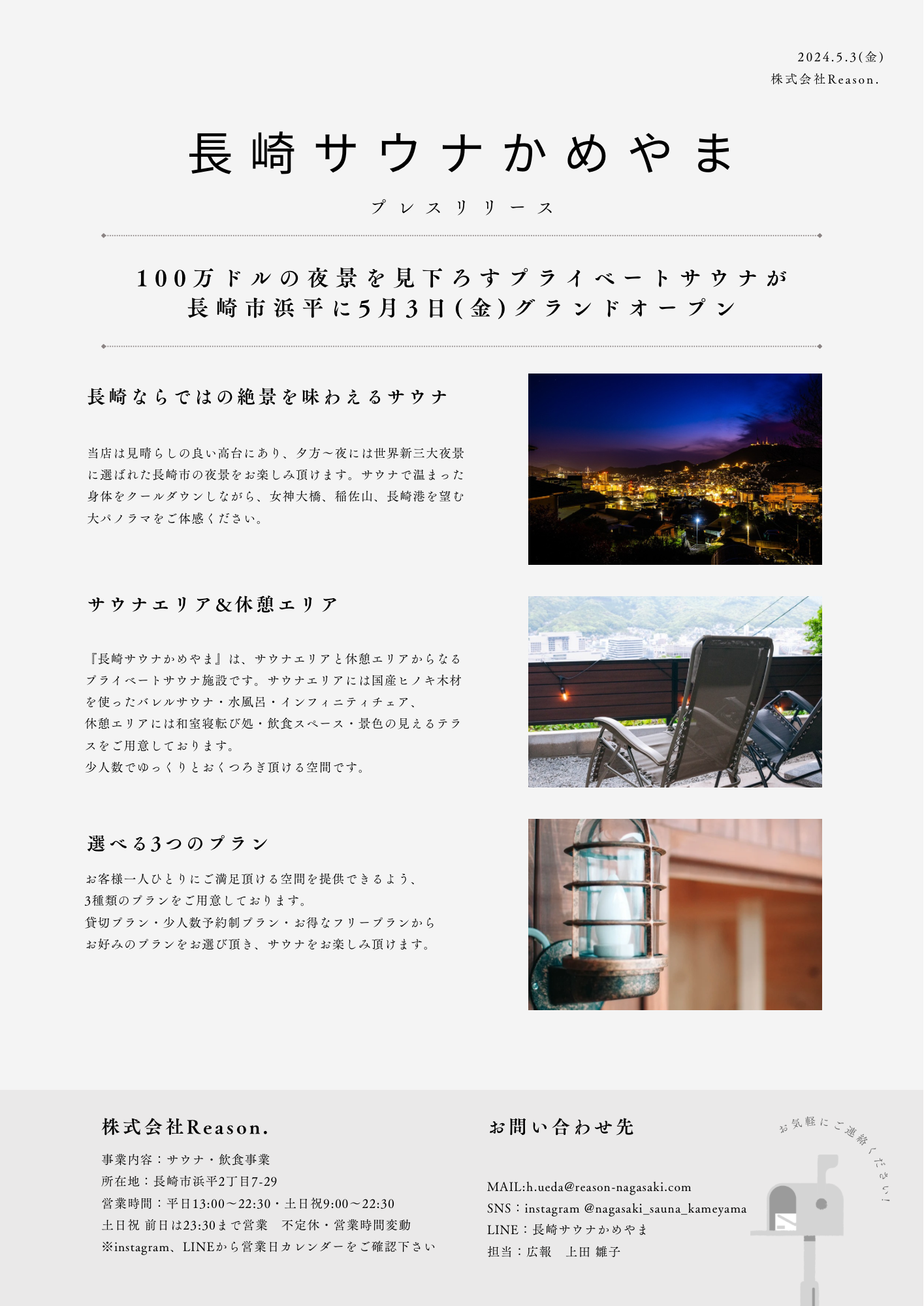 "人々が長崎に訪れる理由を創造する"を理念に、長崎の魅力をつめこんだサウナ施設をオープンしました