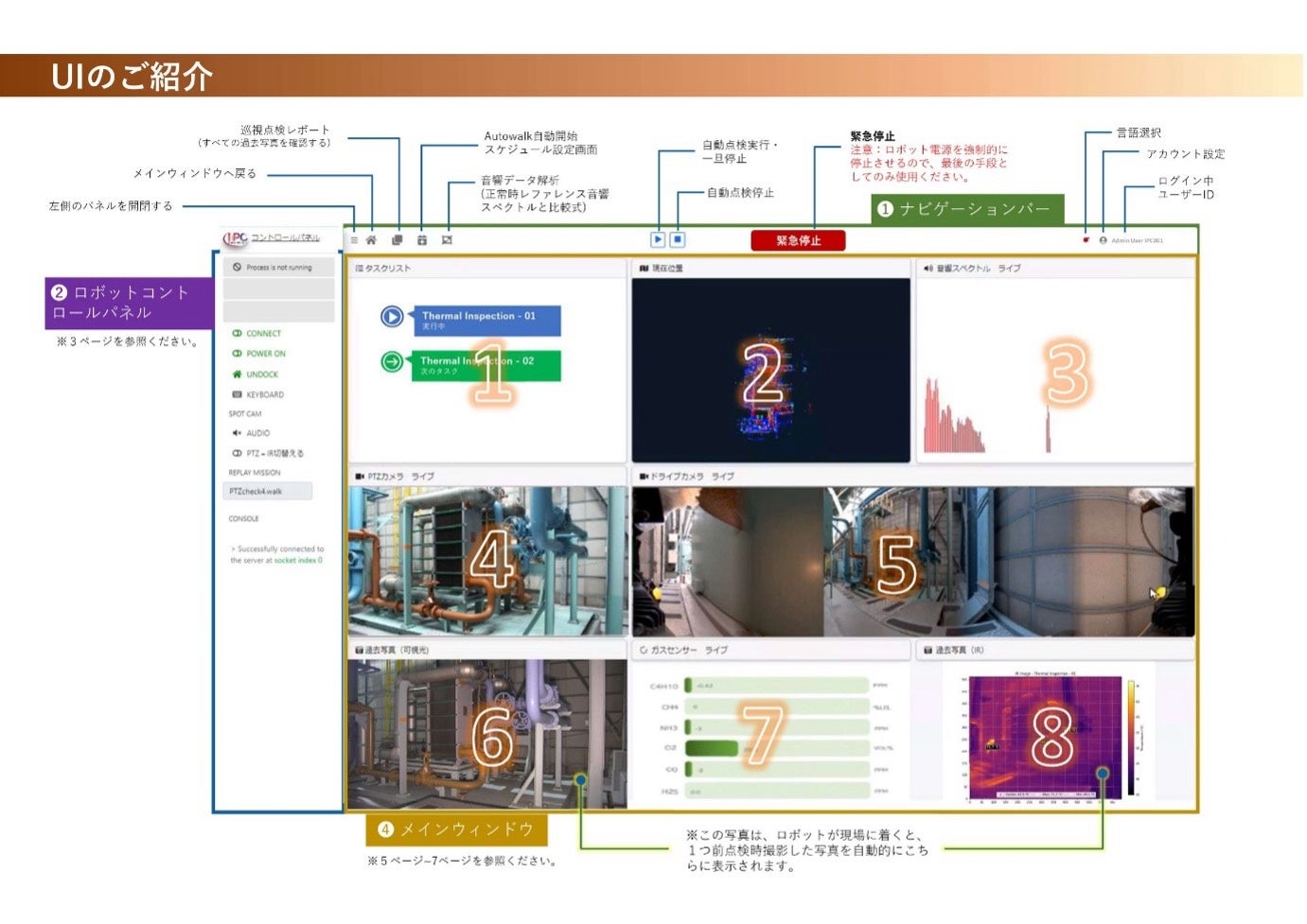 独自のソフトウェア開発やパッケージソフトの販売(SaaS)も行い、操作画面のアイコンやボタン配置を直感的にわかりやすく構築することで、ユーザビリティの高いソリューションを提供します。エナジーロボティクス社との提携によるソフトも販売・サポートし、ロボット導入後の点検業務の即時開始を可能とします。