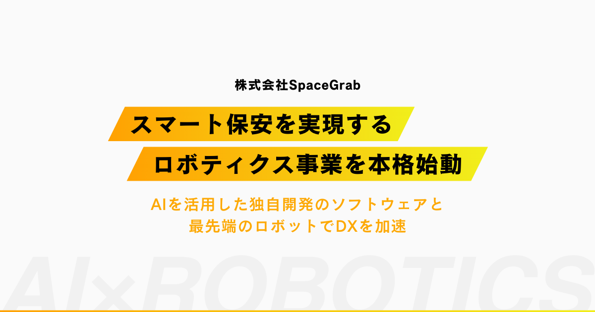 このような社会的要請に応えるべく、SpaceGrabはロボティクス事業を新たに展開し、スマート保安の実現に向けた一歩を踏み出します。