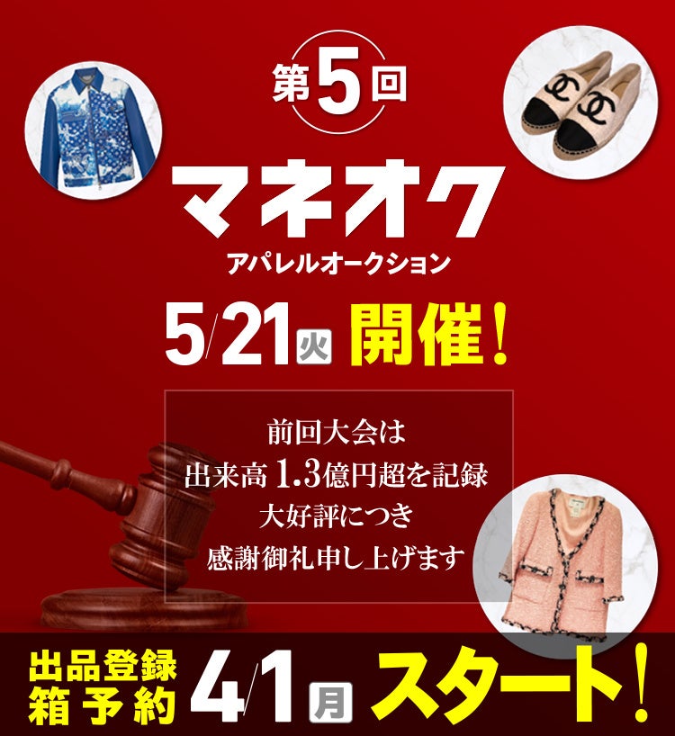 買取専門店「まねきや」を展開する水野(大阪府大阪市)が主催するアパレルを中心とした古物市場「まねきやオークション(マネオク)」の出来高が1億円を超えた。3月18日に開催された第4回大会の出来高は1億3000万円に、ブランドバッグの伸びが牽引した。