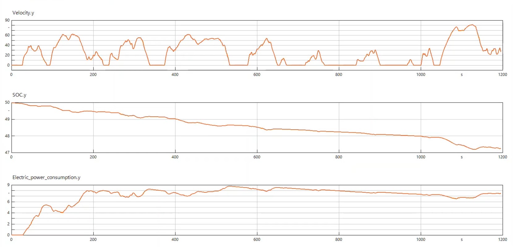 会場では、EV電費モデルのデモンストレーションを行います。お客様の開発部品のパラメータを組込んだモデルにより、電費は勿論、車速や充電率がグラフとして“見える化”できるMILSモデルです。
