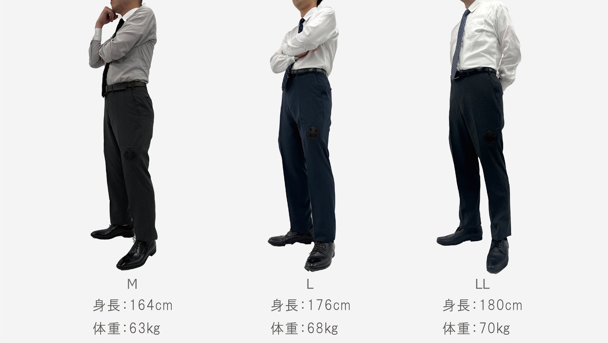 サイズは M / L / LL のスリーサイズでご用意しています。