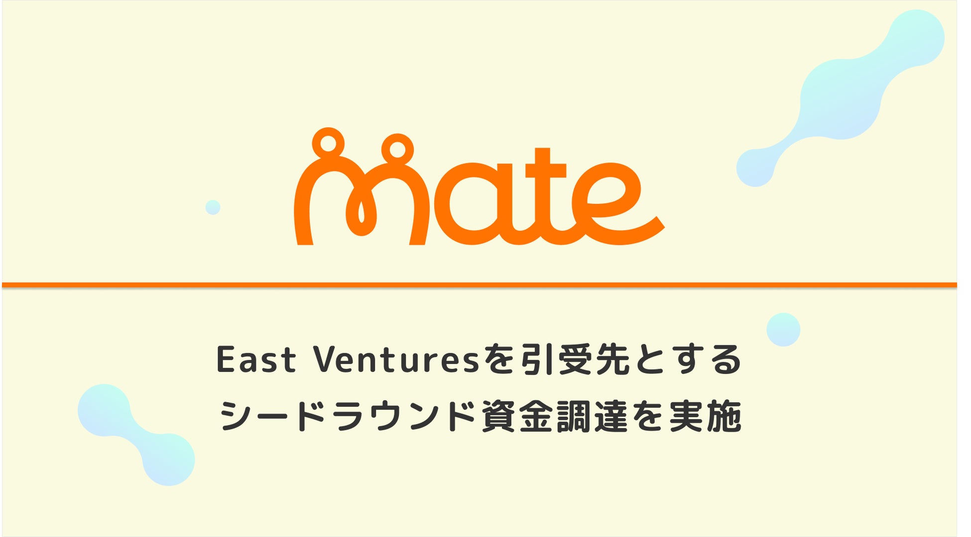 クリエイターがクリエイターを育てるコラボプラットフォーム「mate」を開発するmate株式会社(本社:東京都渋谷区、代表取締役:吉田成更)は、East Venturesを引受先とする第三者割当増資による資金調達を3,000万円で実施したことをご報告いたします。