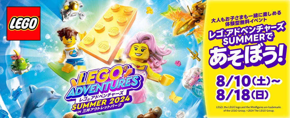 【大好評イベントを今夏も開催!大人もお子さまも一緒に楽しめる 体験型無料イベント】「レゴ®アドベンチャーズ SUMMER 2024 in 三井アウトレットパーク」開催