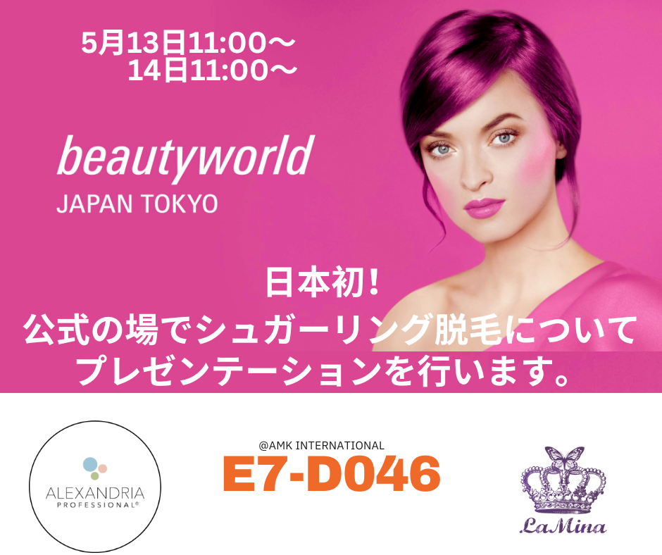 AMKインターナショナルは「LaMina」ブランドで、オールナチュラルのシュガーリング脱毛サロンを全国に展開しています。今回の「ビューティワールドジャパン」では、世界最高峰のシュガーリングブランド「Alexandria Professional」のリナ・ケネディ氏を招き、リナ氏自らによる特別プレゼンテーションを開催します。