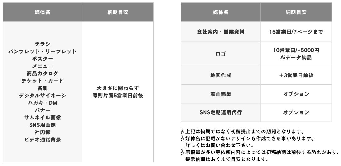 販促や広報に力を入れたいものの、デザイナーを雇うまではお金をかけられない事で手を付けられていなかったり、他業務とデザインを兼務して本業が疎かになってしまっている中小企業や個人事業主を対象にしたサービスです。