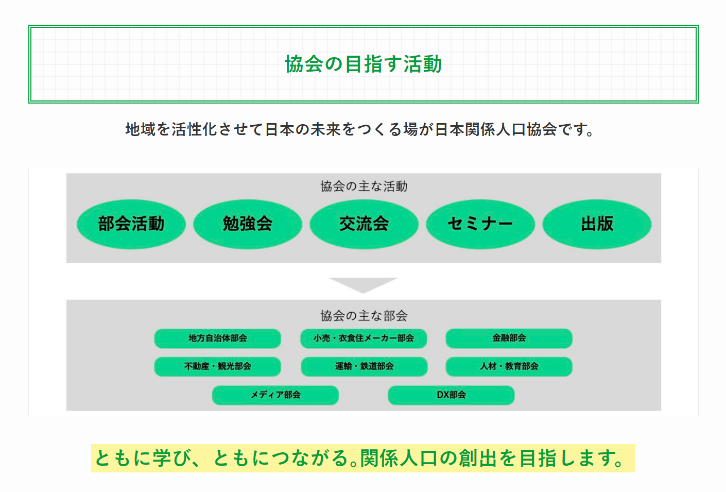 一般社団法人日本関係人口協会は、関係人口との協力を通じて、より公正で包括的な社会を構築し、持続可能な未来を実現することを目指します。