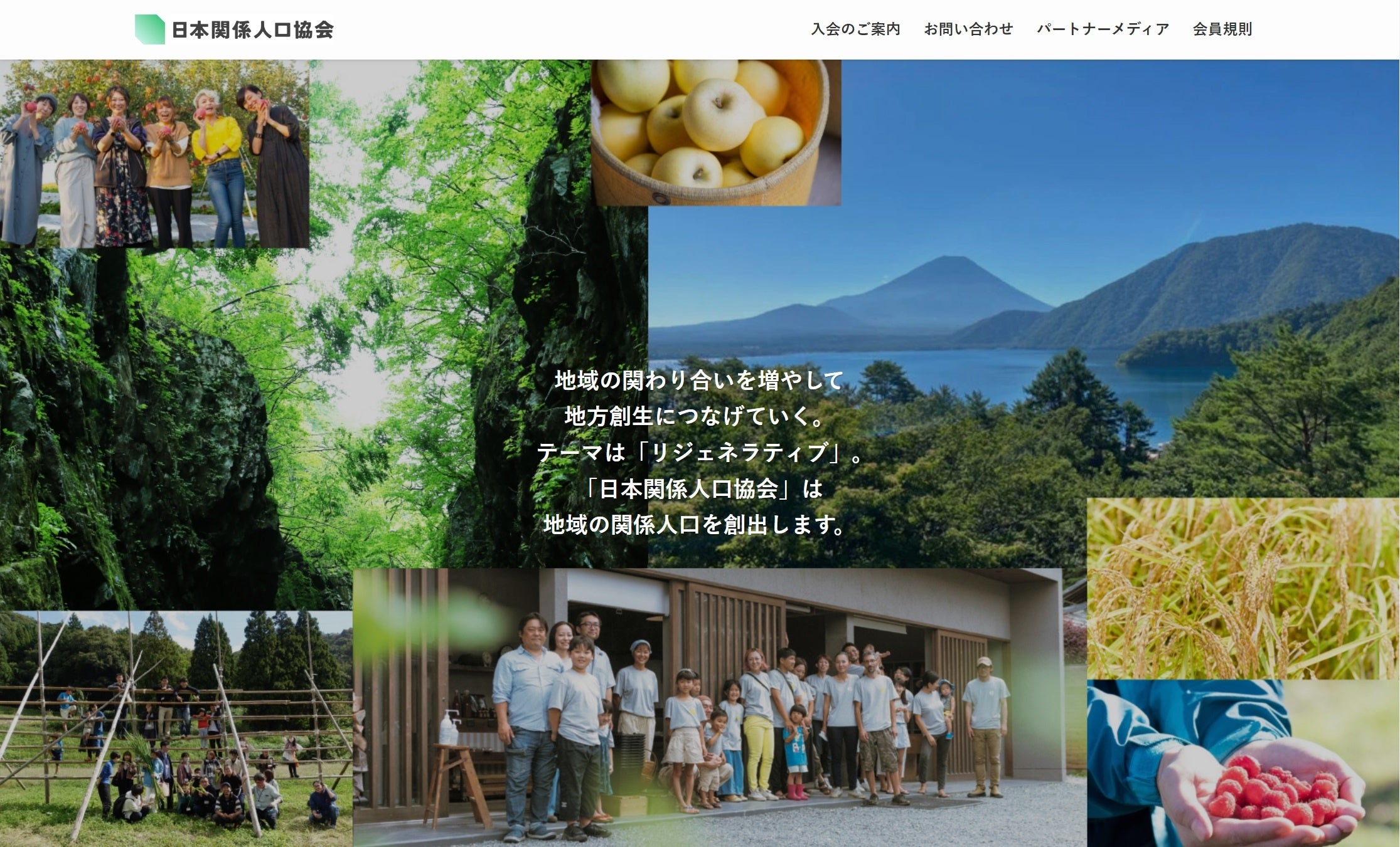 昨今のデジタルテクノロジーの発達で、地域や業界、組織など、あらゆるジャンルや分野において内と外や、地理的・時間的な境目が溶け、垣根を越えて共創する時代になりました。まちや地域のあり方も同じようにシームレス化が進んでいます。地域の活性化には、その土地の内部の力だけでなく、外部の熱量が等しく必要です。日本の地域を新しい形で活性化していく。日本関係人口協会のテーマは「リジェネラティブ」(よりよく、再生させるの意味)。リジェネラティブな関係人口づくりを推進していきます。