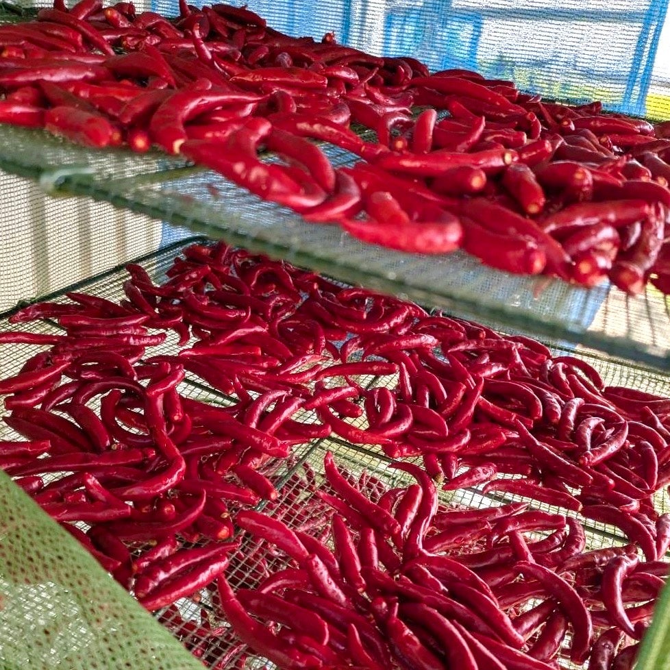 炎天下にも負けずに太陽の下、強く育った自然の恵みである唐辛子。