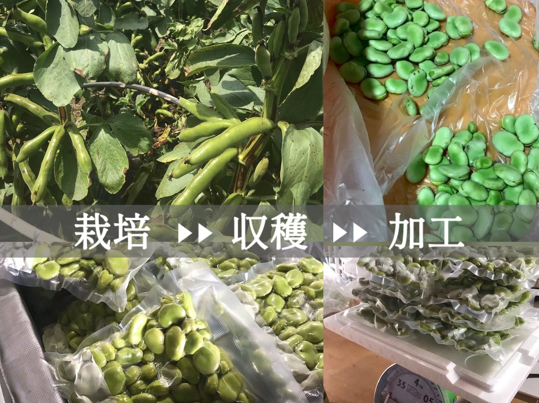 そら豆の種植えから収穫、加工まで一貫して当社で行っています。