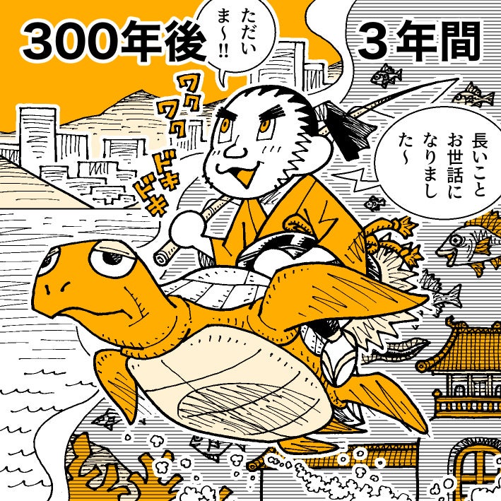 『浦島太郎』は、助けたカメに連れられて竜宮城に行き、3年遊んで帰ってきたら、地上では300年が経っていた…というお話。