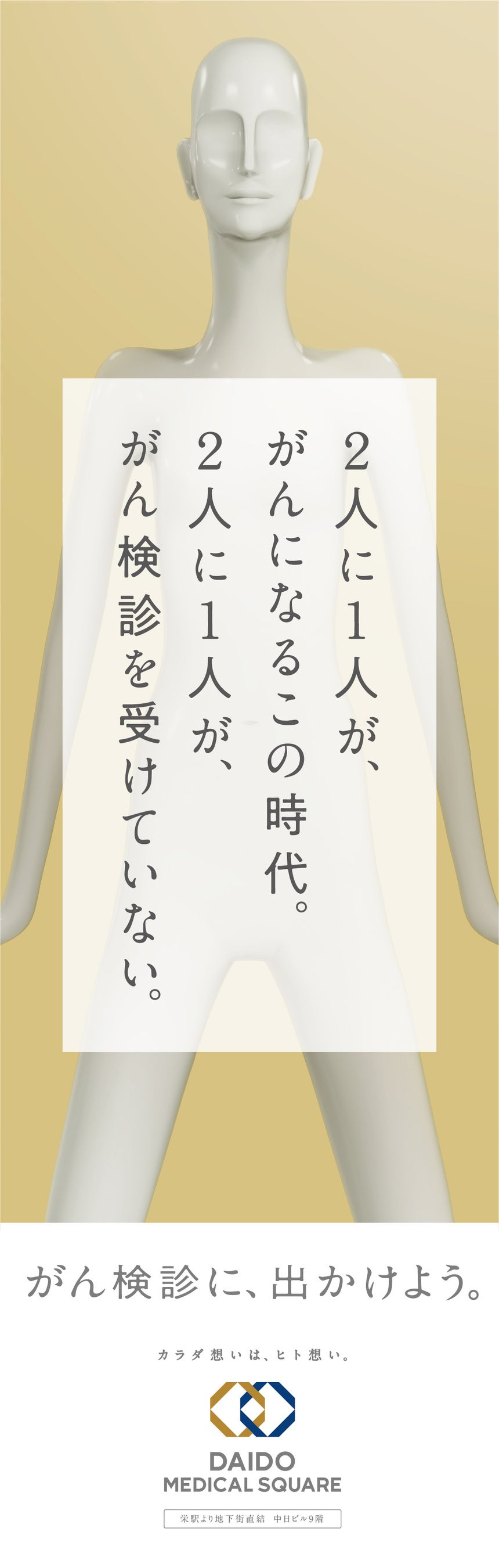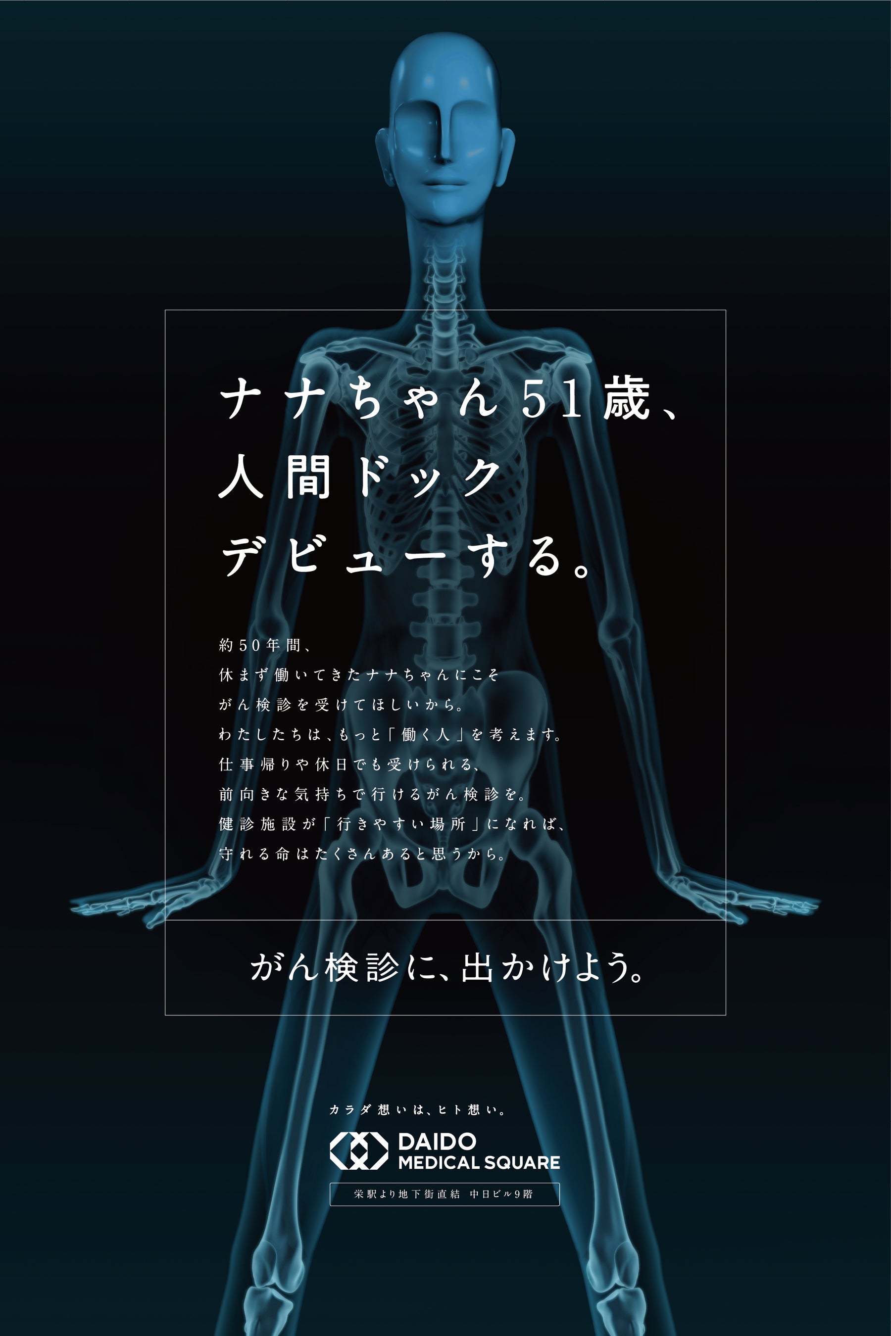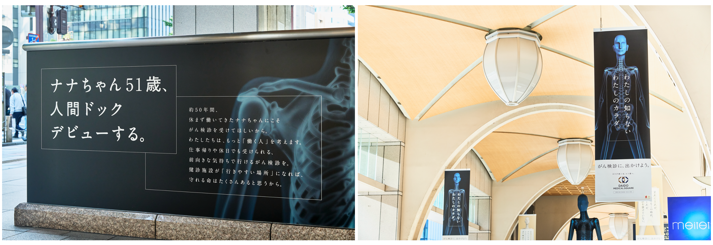 2024年5月15日より名古屋駅 ナナちゃんストリートにて公開健診施設DAIDO MEDICAL SQUAREがビジネスパーソンとそのパートナーに向けて「がん検診」受診を訴える