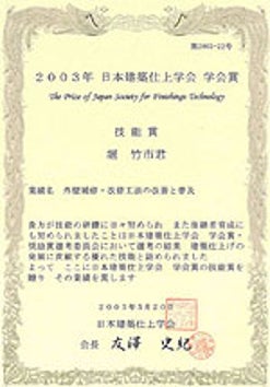 堀 竹市 氏 日本建築仕上学会 第2003-22号 学会賞・技能賞 受賞者