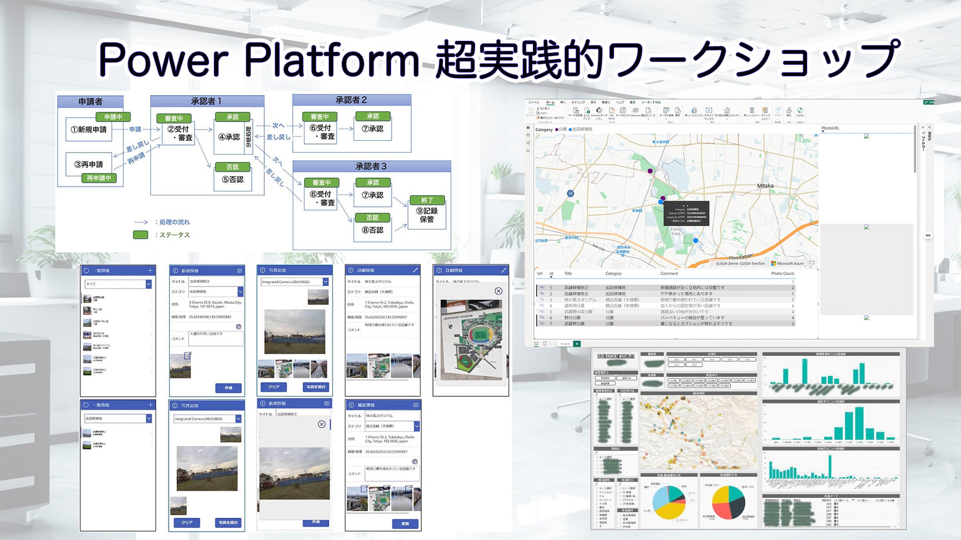 超実践的ワークショップの第1弾として、Power Apps, Power Automate, Power BI を現実的なシナリオを通して学ぶ、3つのワークショップを提供します。