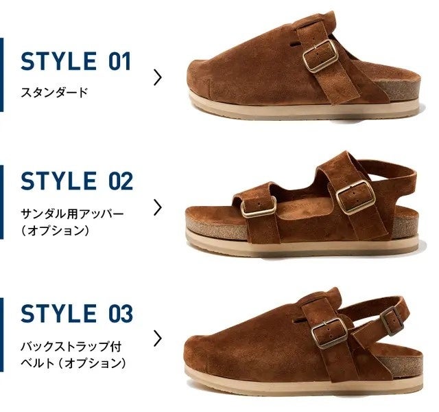 〇フットベッドシューズ&サンダルは、かかとのみを取り外せば、素早く「サンダル」に変身します。オプションのソール&アッパーで、デザインも自在。