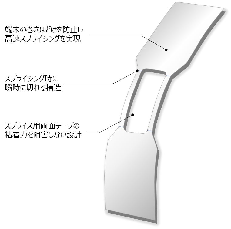 本製品は、原反の始端部に貼るというシンプルな操作だけで、スプライス時の巻きほどけ防止と、スムーズかつ高速で確実なスプライシングを実現できる画期的な製品です。また、自動スプライスの高い成功率は停止時間の削減、加工ロスの低減に貢献します。
