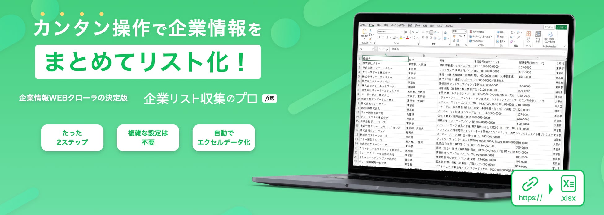 られるツール「企業リスト収集のプロ(β版)」をリリースいたしました。より多くの方に利用してもらうべく、通常月額