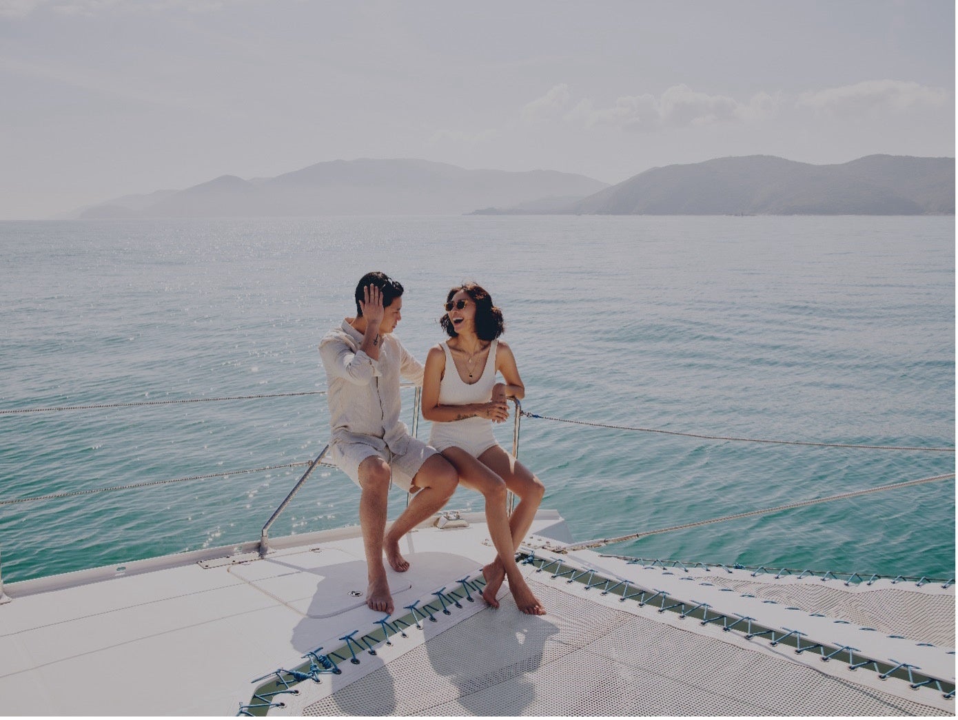 ベトナムの輝く海景色は、リゾートの豪華なヨットでのプライベートな「カタマランボヤージュ」でも楽しむことができます。2~12名の参加者に適したこの半日のプライベートチャーターでは、ゲストは輝くターコイズ色の海、魅惑的な島々、手付かずのビーチ、ジャングルに覆われた山々を優雅にすり抜けます。午前または午後を通じて、シュノーケリング、スタンドアップパドルボード、海釣りなどのアクティビティを選択してカスタマイズでき、ボートの専門クルーが日中の軽食と美味しいランチやディナーを提供します。すべての航海に、冒険心も味わうための隠れ家のような島への立ち寄りも含まれています。