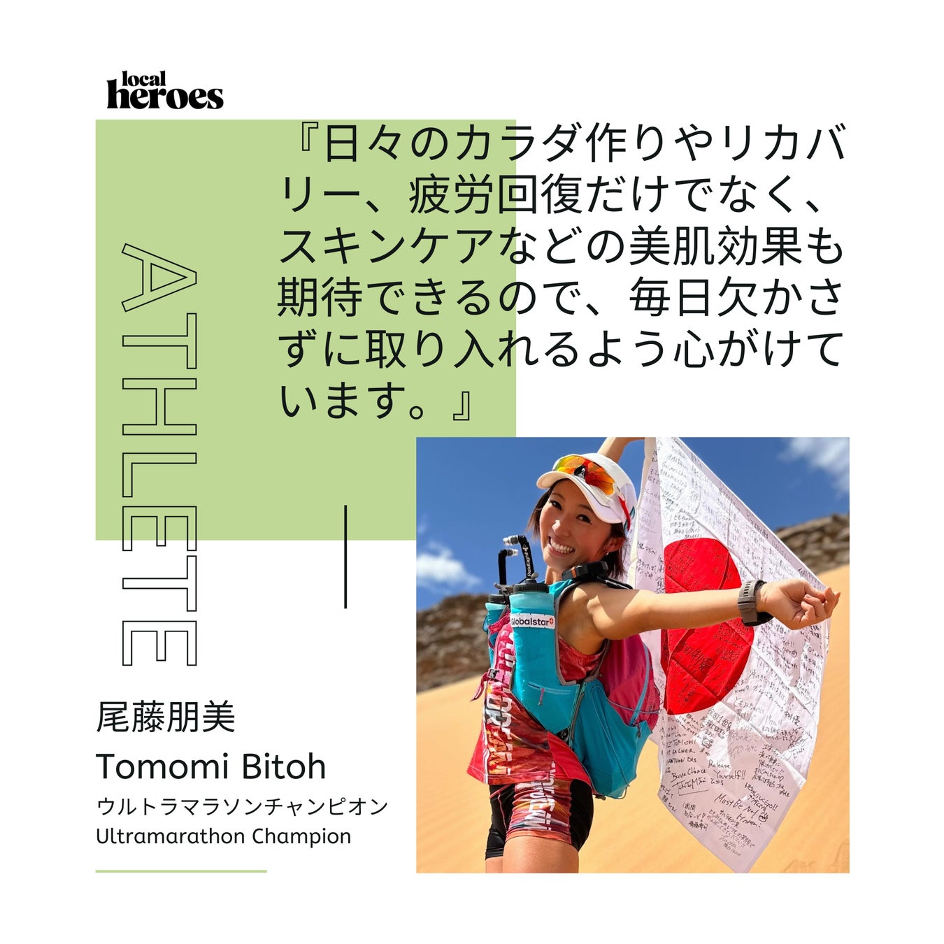 「ローカルヒーロー」は、エリートアスリートと協力して開発され、総合的な健康維持をサポートするために作られています。また、アスリートサポートプログラムを設けており、売上の一部が直接アスリートのトレーニングや大会参加費用に充てられます。