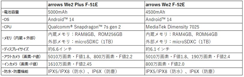 ※「arrows We2 Plus F-51E」「arrows We2 F-52E」共通