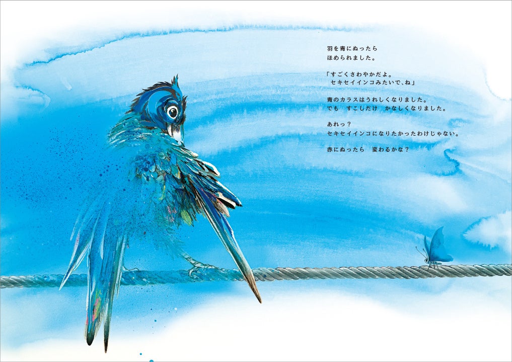 自分の羽をさまざまな色に塗るカラスの冒険が描かれた 『ピンクのカラス』は、読み聞かせにも適しており、親子で一緒に楽しめる内容です。