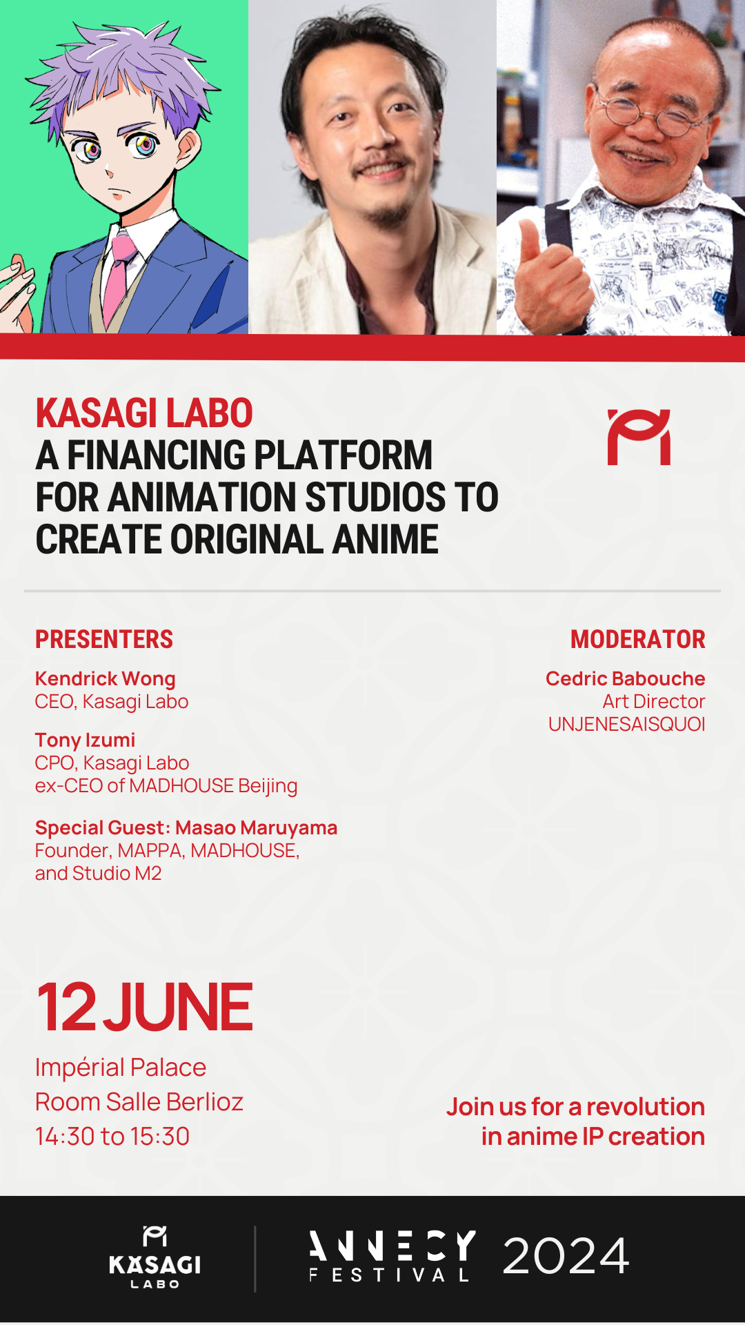 Kasagi Laboは日本のアニメを世界のファンに届けるアニメベンチャースタジオです。アニメ業界と才能 ある人材の応援をミッションとして掲げ、ライセンスを受けた商品の企画開発と海外販売、オリジナルアニメの企画製作を通してファンを夢中にさせる体験をお届けします。詳しくは弊社ウェブサイト (https://www.kasagilabo.com/ja/index.html)をご確認ください。