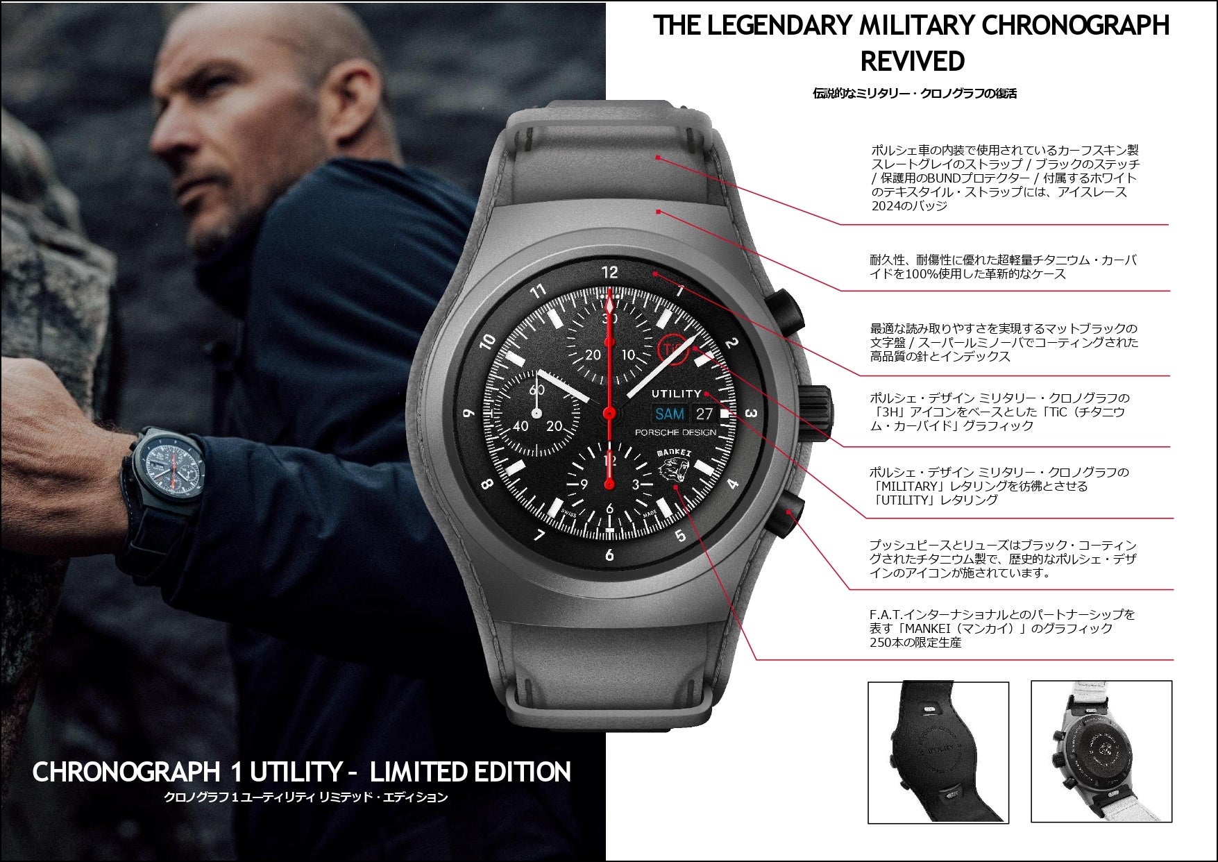 ポルシェ・デザイン クロノグラフ 1 ユーティリティ リミテッド・エディションは、指定販売店にて2024年5月15日より販売されます。