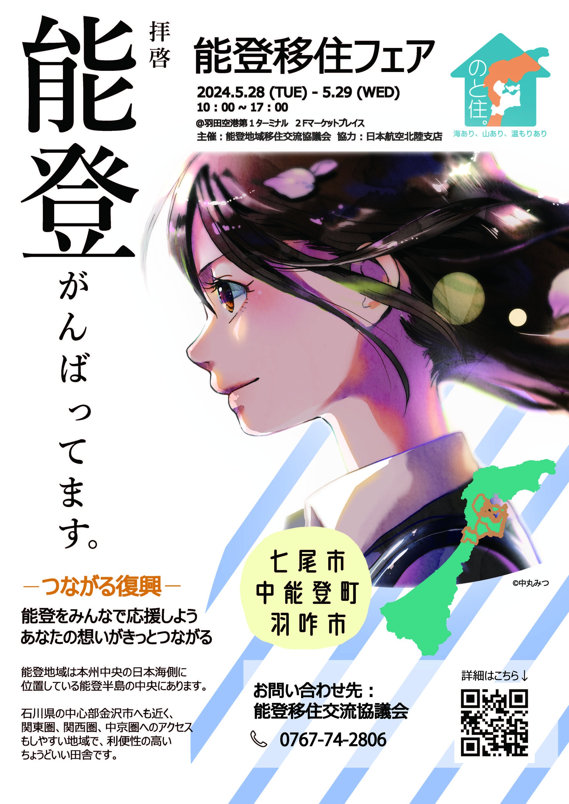 七尾市、中能登町、羽咋市で構成する能登地域移住交流協議会(会長:岩田正)は、移住プランナーによる移住相談会と震災後、能登の現状を広くお伝えするため「能登移住フェア 拝啓 能登がんばっています。」を5月28日(火)、29日(水)に実施いたします。