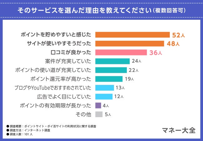 ポイントサイトを選んだ理由は『ポイントを貯めやすいと感じた』が最多