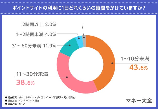 ポイントサイトの利用時間は『1〜10分未満』が43.6%で最多
