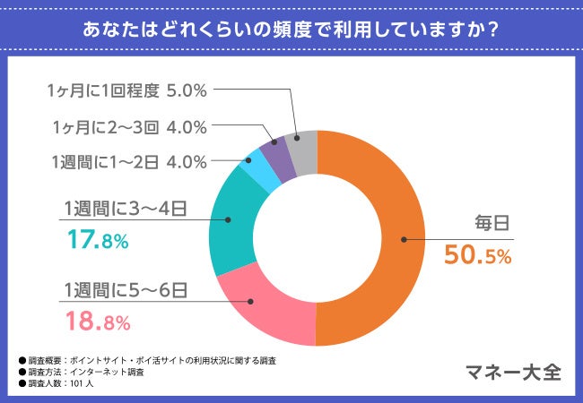 50.5%の方がポイントサイトを毎日利用していると回答