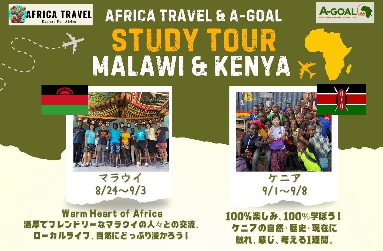 アフリカ専門の旅行コンシェルジュサービス「Africa Travel」を提供するLim-Kawano & Company株式会社(所在地:東京都、代表:河野雄太)と一般社団法人A-GOAL(所在地:東京都、代表:岸卓巨)は、2024年8月24日~9月8日に東アフリカのマラウイ共和国およびケニア共和国にてスタディーツアーを実施します(現地集合・解散)。