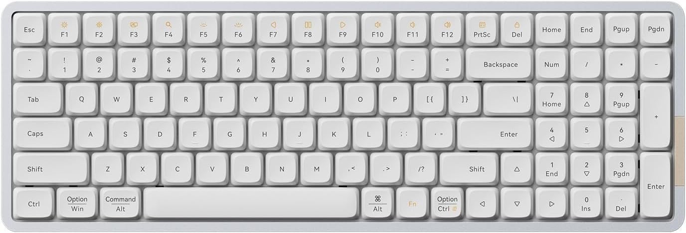最大限の実用性に特化したミニマルデザインの原則を採用したBlockキーボードは、温かみのあるオレンジ色のノブがハイライトとなり、ソフトグレーの筐体色が特徴です。実用性に重点を置いた98キーのブロック型キーキャップが、控えめでエレガンスさと機能性を融合させています。このデザインは、あらゆるワークスペースを補完するだけでなく、タイピング効率も向上にも寄与しています。また、ミニマリズムユーザーにとって、スタイリッシュさと機能性の両方を提供しています。