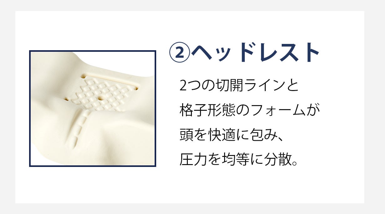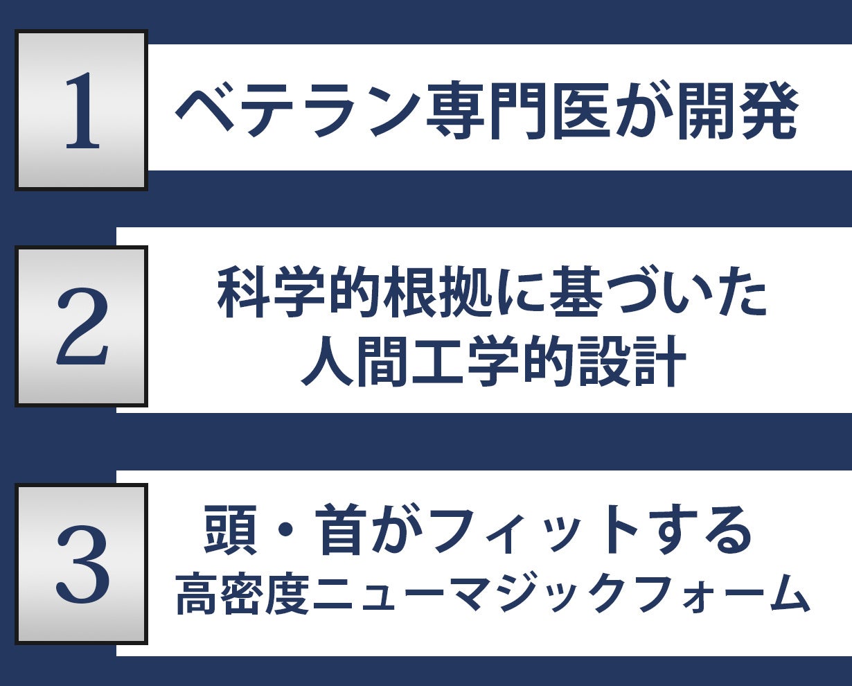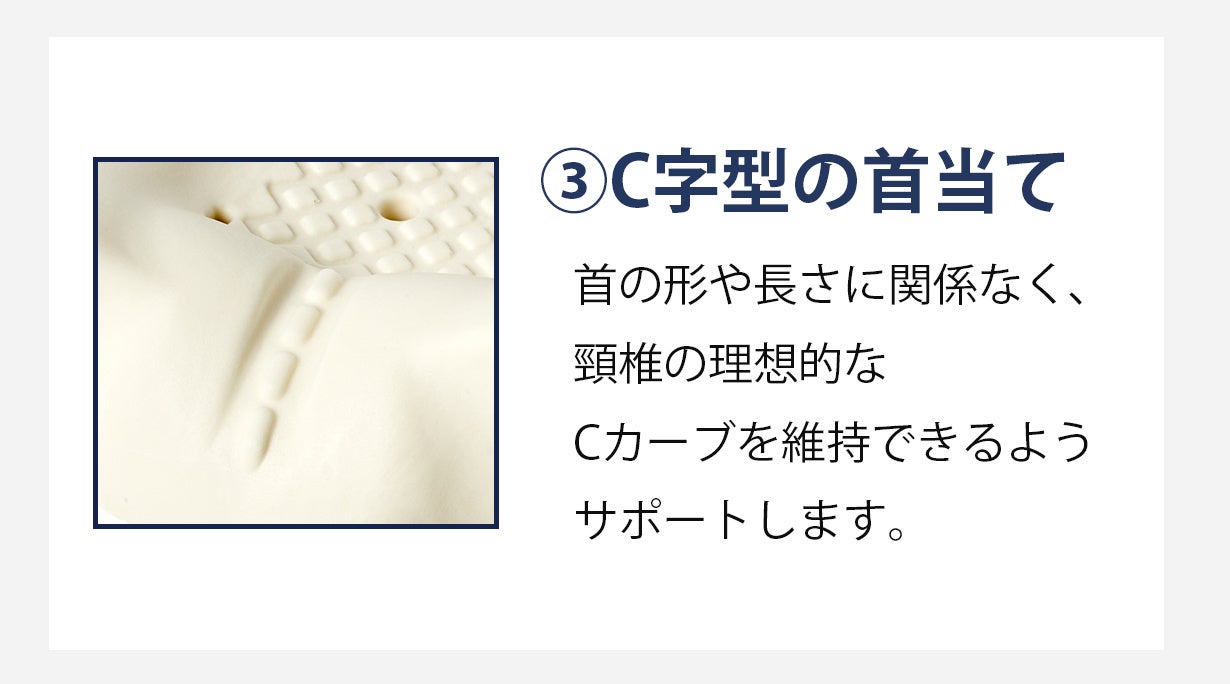 睡眠時に所定の位置に戻ろうとする人間の習性を利用し、正しい寝姿勢を保てるよう人間工学的な設計で作られています。