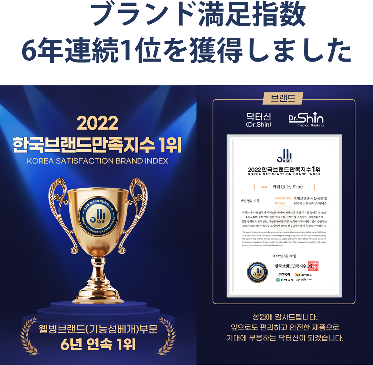 専門的な知識をフル活用した製品により、「Dr.Shin」は韓国ブランド満足度指数6年連続1位を獲得!