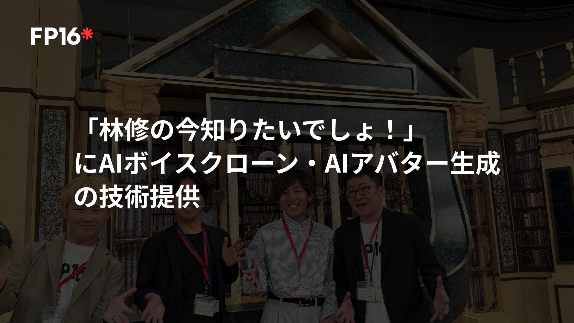 『AIと共に時代を先駆ける。』をビジョンに掲げ、AIを活用したシステム開発や業務改善を手がける株式会社FP16(エフピージュウロク)は、このたびテレビ朝日の「林修の今知りたいでしょ!」にAIボイスクローン・AIアバター生成の技術提供を行いました。