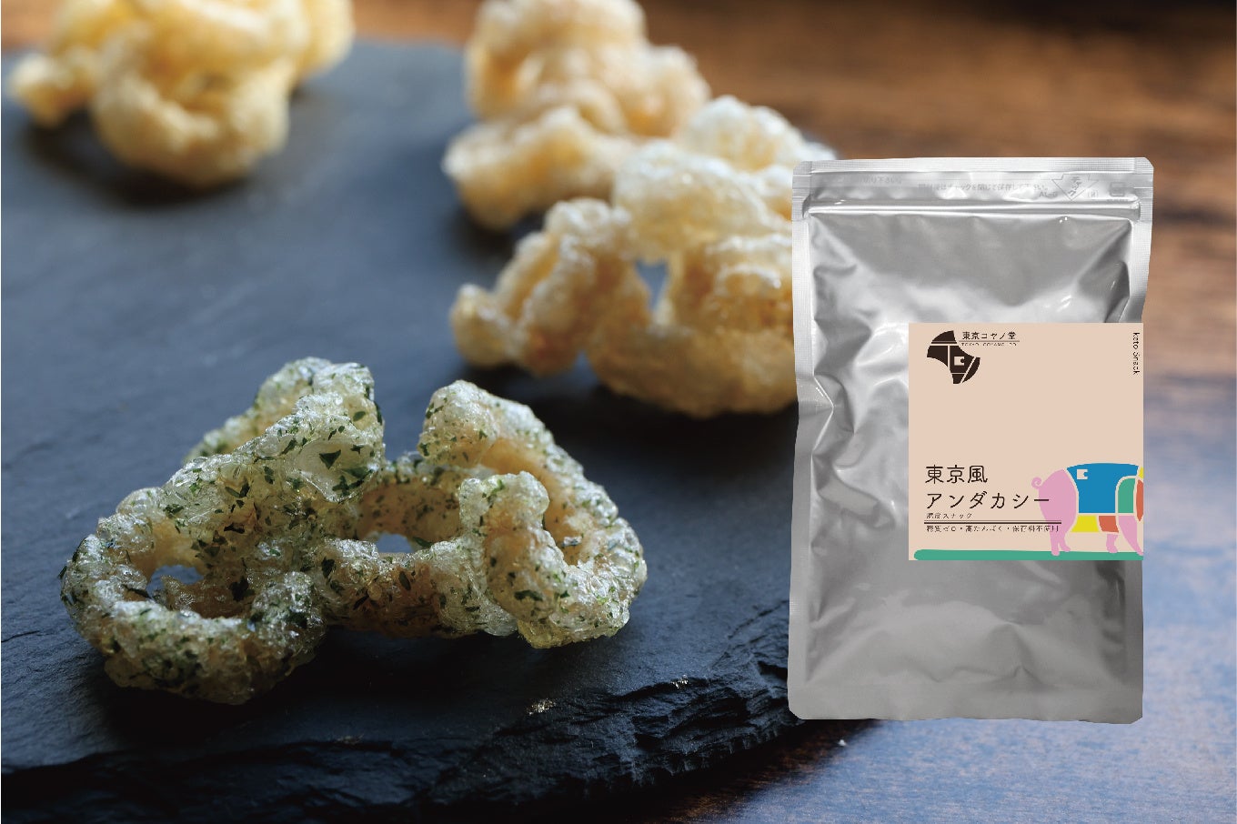 また、主力商品である糖質ゼロスナック「東京風アンダカシー」のパッケージデザインも刷新され、豚をモチーフにしたカラフルなデザインが採用されました。