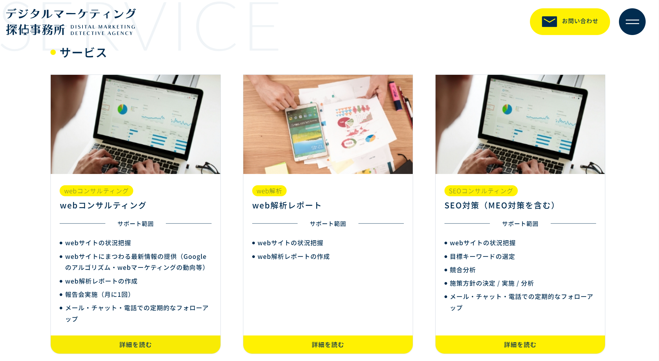 webマーケティングのコンサルティングを事業としているデジタルマーケティング探偵事務所のwebサイトがオープンしました。主なサービスは「SEOの内製化(インハウス)支援」や「web解析」となります。